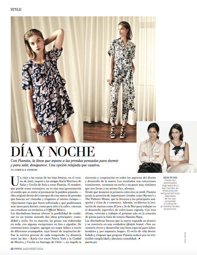 Interview: Piamita Interview of Piamita brand founders, Karla Martínez de Salas and Cecilia de Sola. Related